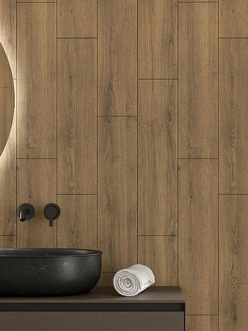 Warm wood wall panels bring the look of natural wood into bathrooms and wet spaces without the maintenance or limitations of real wood. This collection features realistic wood textures and tones that add warmth, depth, and a spa-like feel to showers, bathrooms, and interior walls.